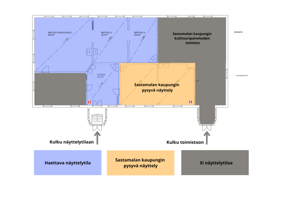 Havainnollistava pohjakuva Kulttuuritalo Jaatsin haettavasta näyttelytilasta (alkaen vuodesta 2026)