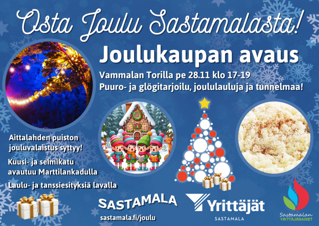 17.11.2025 | Elinkeinopalvelut Sastamalan perinteinen Joulukaupan avaus torilla pe 28.11. Jaa Kopioitu leikepöydälle