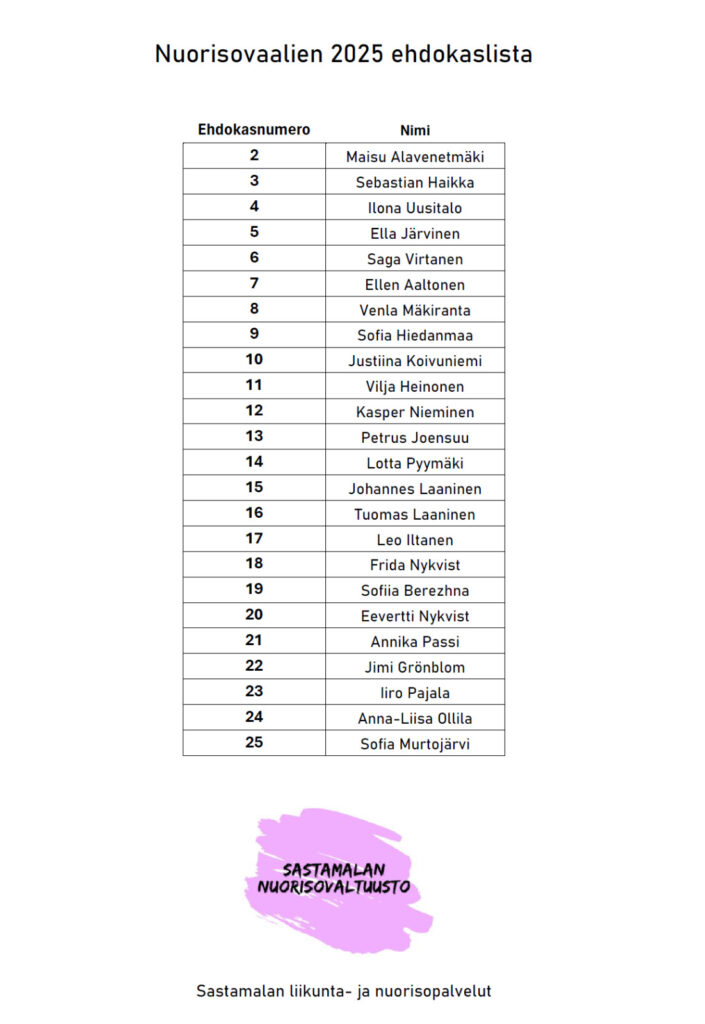 Nuorisovaaleilla valitaan 17-jäseninen Sastamalan Nuorisovaltuusto toimikaudeksi 1.1.2026–31.12.2027.
