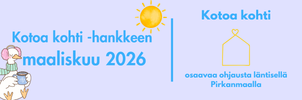 Tervetuloa kotoa -kohti hankkeen tapahtumiin! Tapahtumat ovat kaikille avoimia.